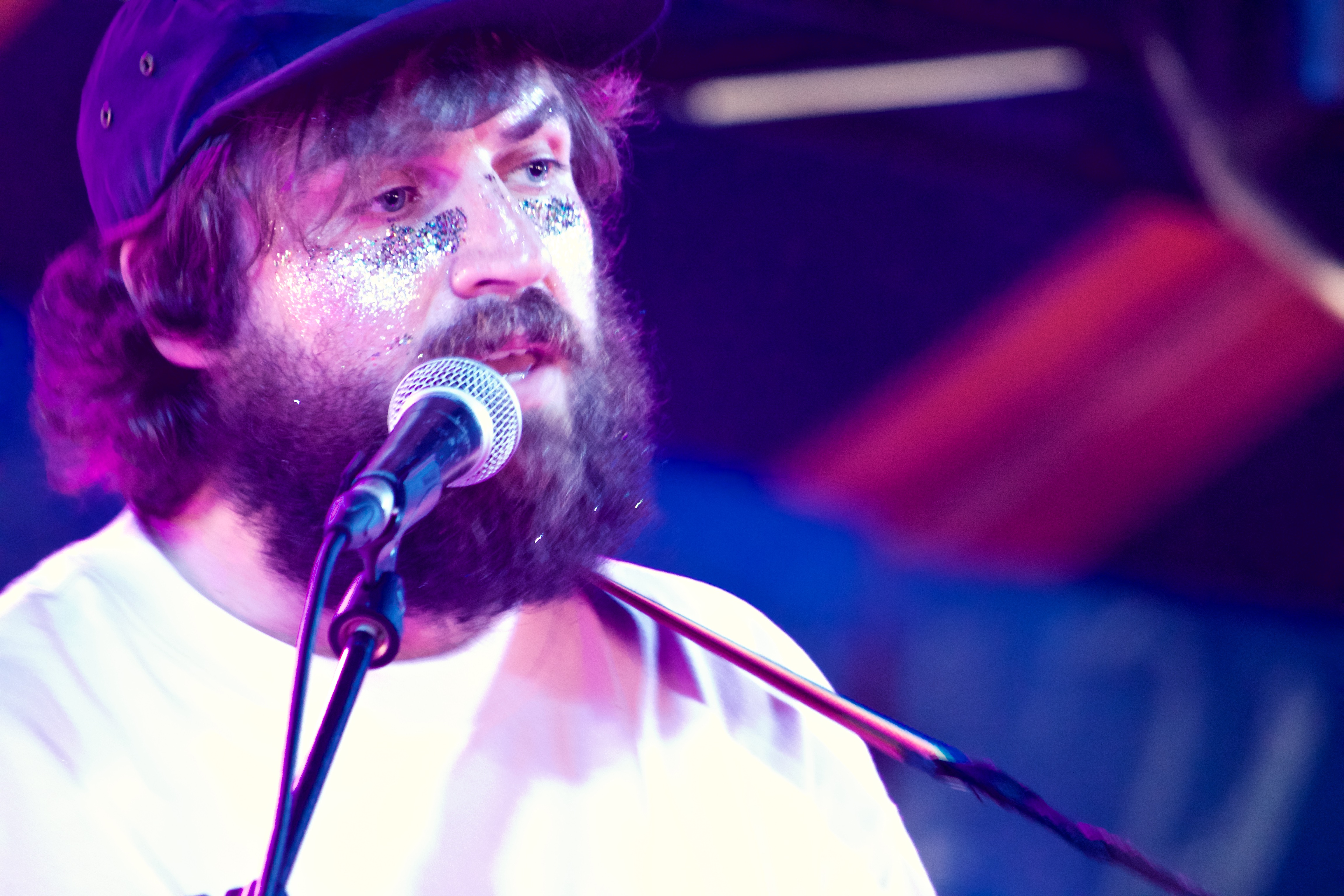 On just after were The Pictish Trail, aka Johnny Lynch from the Isle of Eigg in the Scottish Hebrides. Here with full band, this plump, bearded glitter faced singer excelled as a frontman, with his psychedelic, euphoric pop pulling in the crowds.