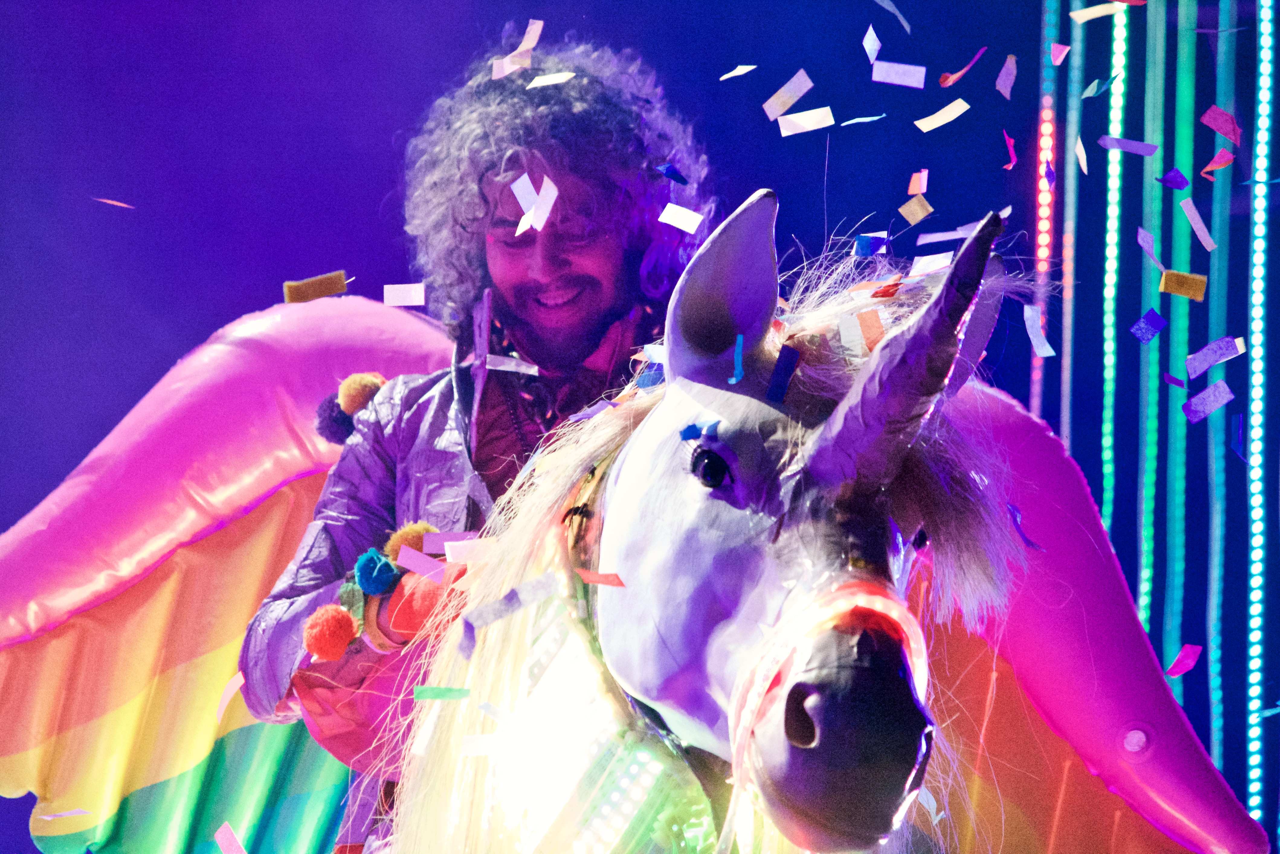 With a Glastonbury Festival friendly set of hits, most notably those from their peak pop album Yoshimi and the Pink Robots (2002), frontman Wayne Coyne was on exceptional form. Like a psychedelic faerie prince he relied on his full repertoir of showmanship – blasting the crowd with explosions of glitter and balloons, rolling around in a giant ball across the crowd and even riding a giant unicorn at one point.